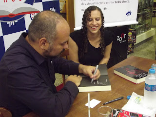 Talvez, a sessão pudesse ter sido realizado em algum lugar maior. Muitas pessoas acabaram ficando em pé, que logo eram digamos que "convidadas à sentar". O espaço era um pouco pequeno e graças a sei lá quem, não havia tantas pessoas. Faltou um pouco de organização por parte da livraria. Não sei se era a primeira vez que acontecia uma sessão de autógrafos e creio que talvez não era esperado o mesmo número de pessoas.